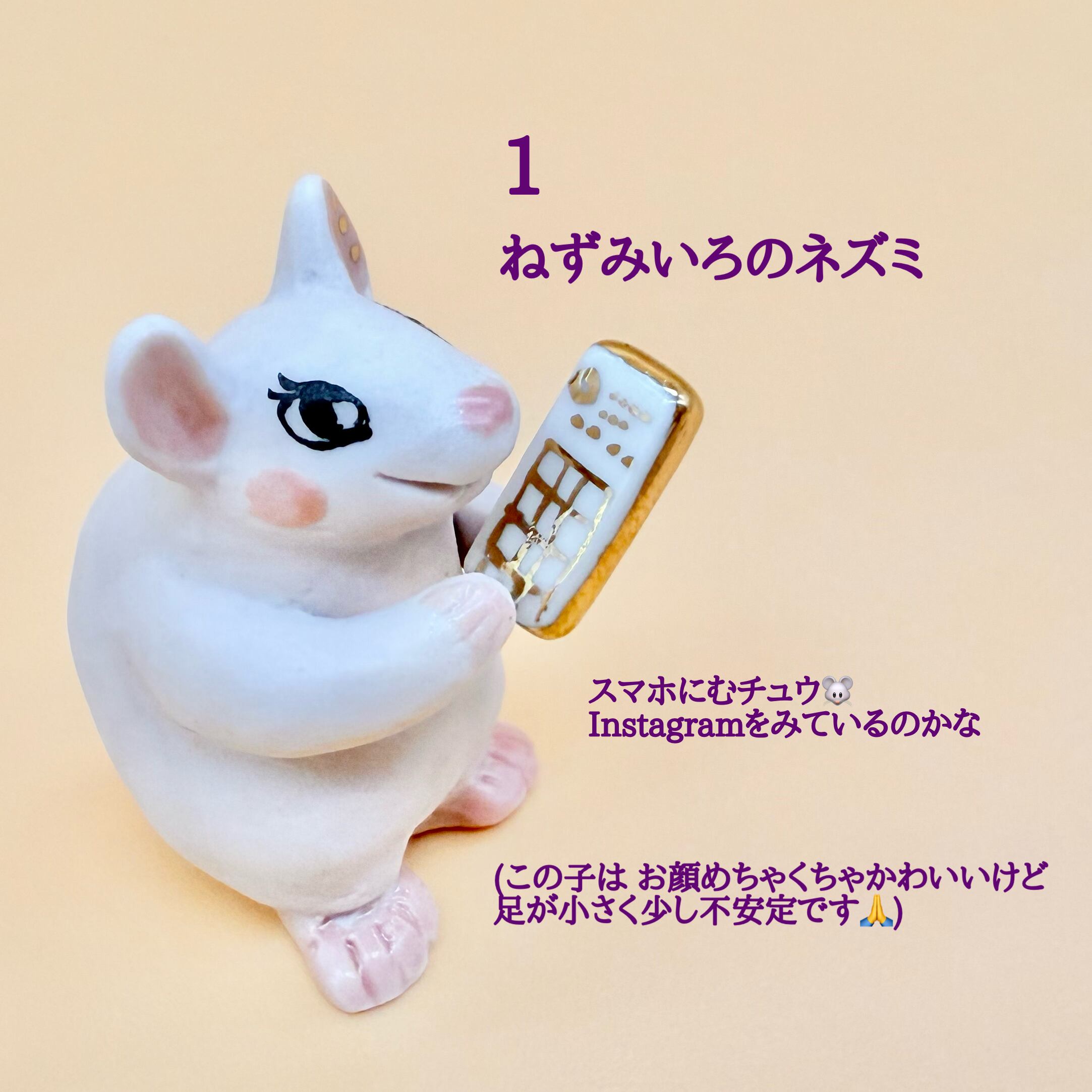 ネズミの体には釉薬をかけずに焼いているのでマットな質感です。