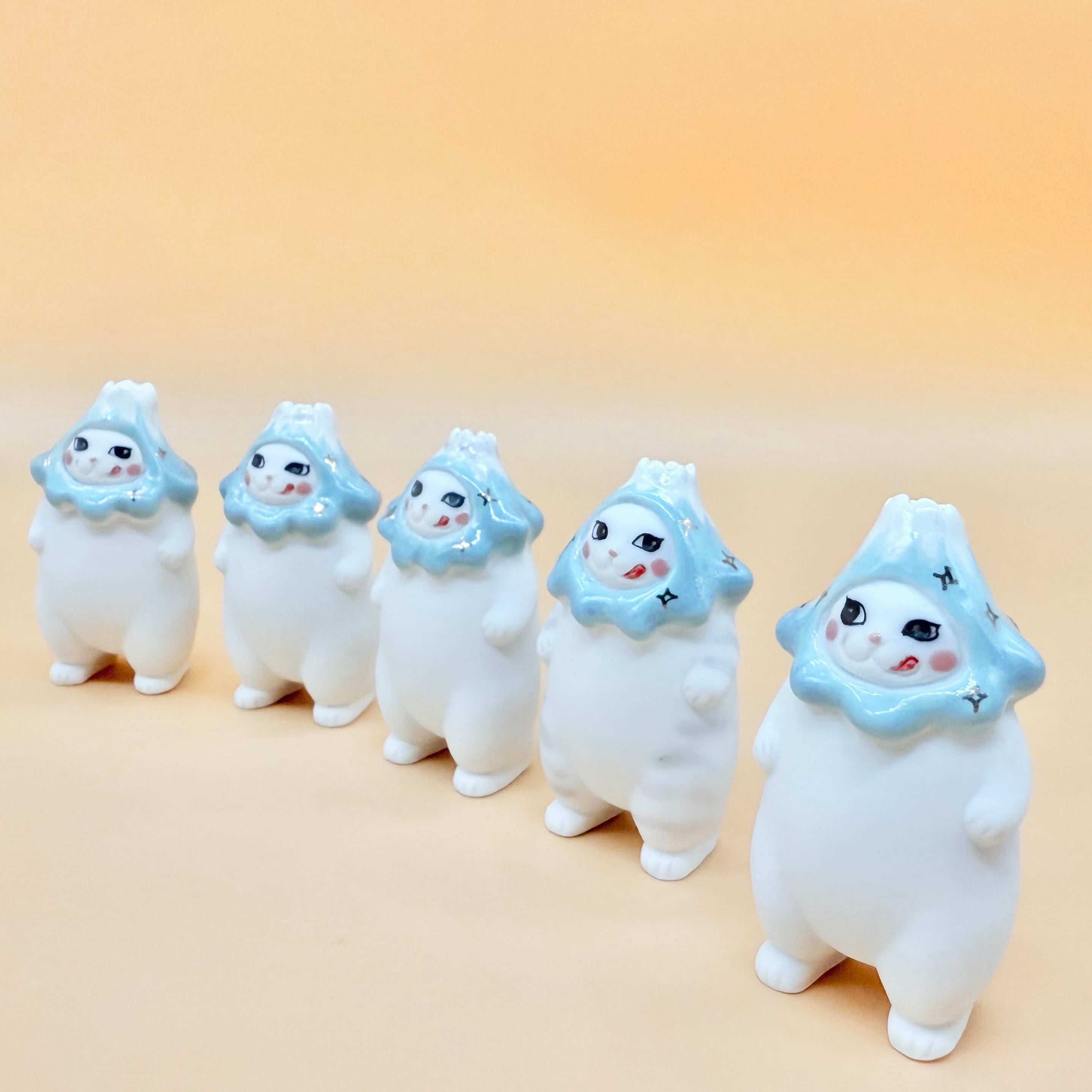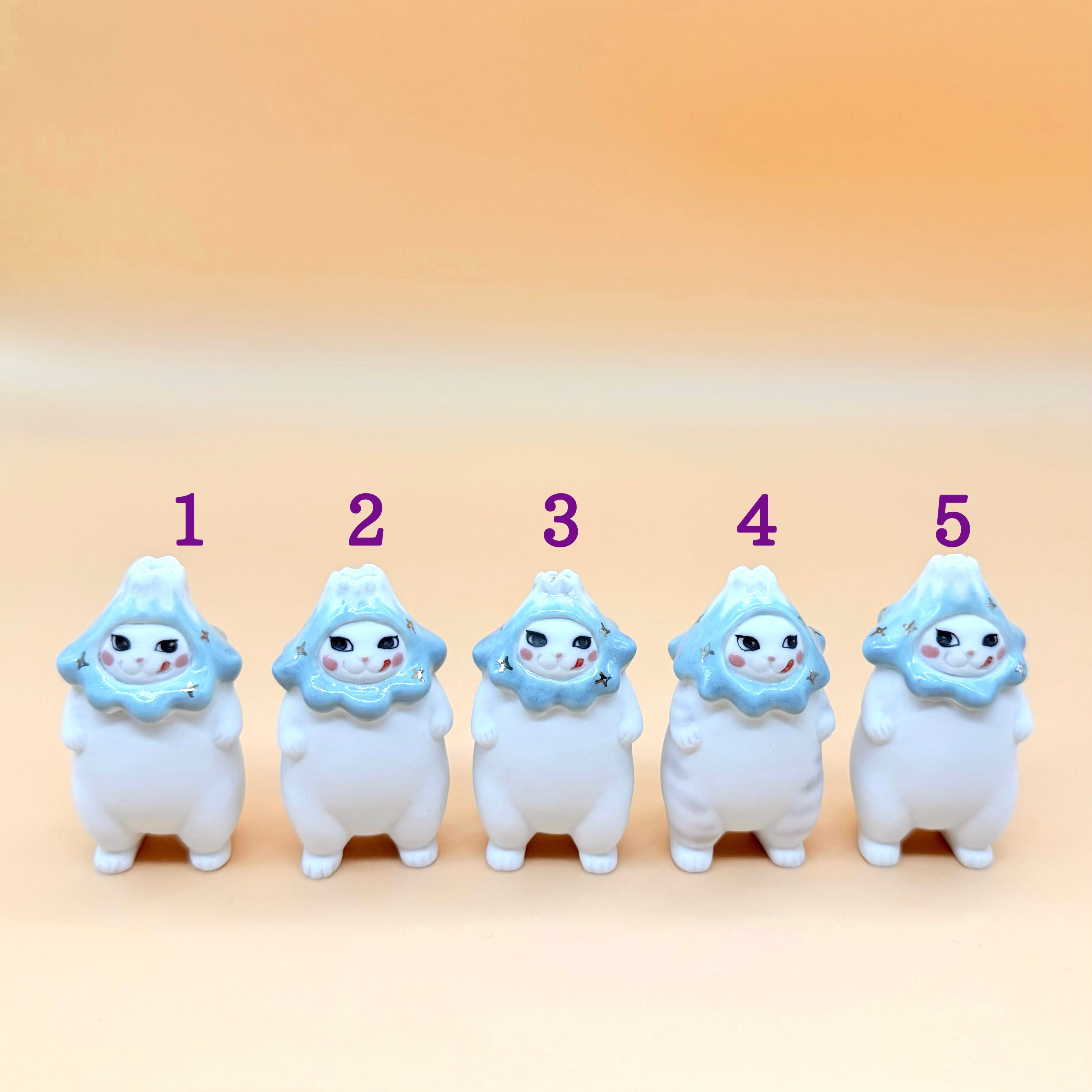 かぶっている富士山は粘土が柔らかいうちからくっつけて猫と共に3度焼成しております。