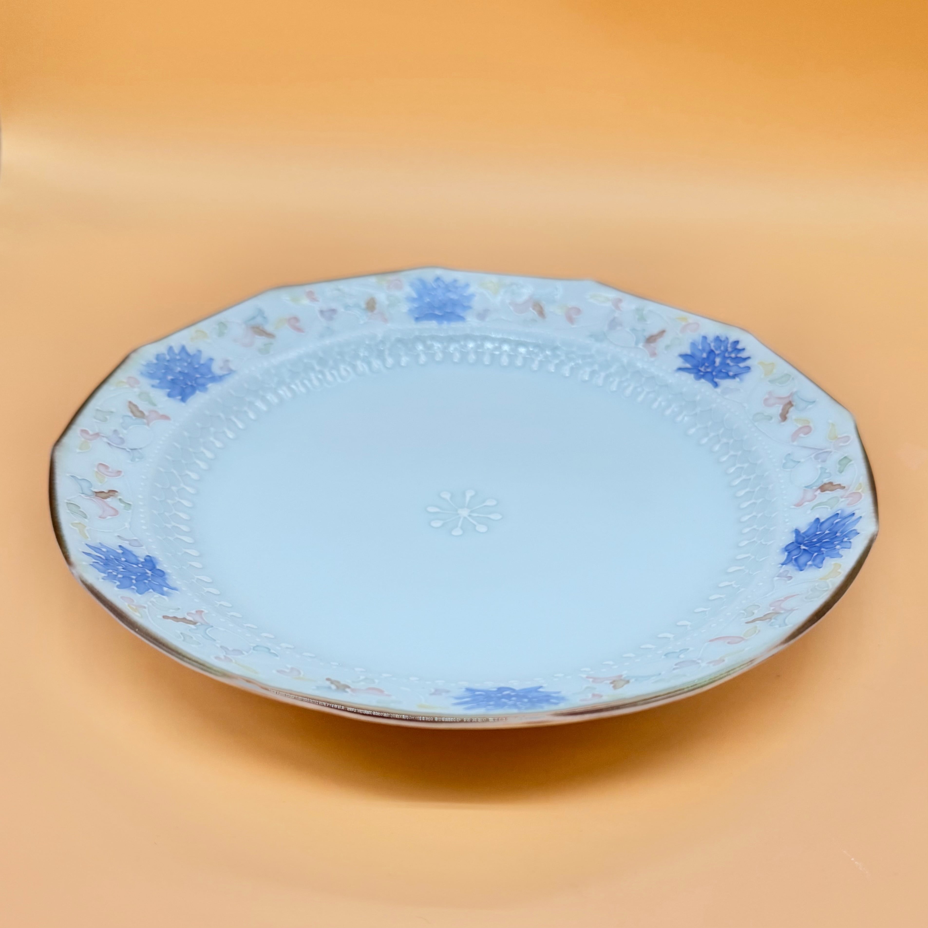 伝統紋様【牡丹唐草】と伝統技法【イッチン】の組み合わせですが水彩画のような淡い色彩をのせることで和にも洋にも感じるモダンな雰囲気に仕上がりました。